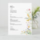 Elégant menu Mariage Floral, avec des noms de couple à l'arrière.