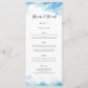 Menu Cartes ou programmes de mariage pour votre mariage pour correspondre à vos invitations de mariage bleu aquarelle. Le premier au 3ème plat et les boissons sont inclus pour vous de customiser. La page arrière est laissée en blanc pour le texte supplémentaire facultatif.