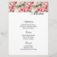 La carte de menu est présentée avec un imprimé d'art de belles fleurs de pivoine rose et blanche accentuées en haut de la carte, montré sur le papier de base de la carte blanche. Script et texte standard en noir. Customisez les éléments du menu en cliquant sur le bouton customiser modifier, recherchez à droite et trouvez les cases appropriées pour modifier vos informations. Je vous souhaite de bons voeux pour votre jour de mariage.