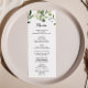 Cette carte de menu feuille vert tropical est parfaite pour un mariage de destination. Le design présente de beaux feuilles verts peints à la main, ornant un cadre géométrique doré. Ce menu peut être utilisé pour une réception de mariage, un dîner de répétition, une douche nuptiale ou tout événement.
