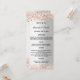 Une carte élégante et séduisante pour les mariages. Personnalisez et ajoutez vos noms, votre date et le menu mariage. Faux arrière - plan d'apparence argentée, décoré de confettis rose d'or.