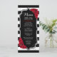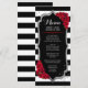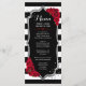 Design noir blanc rouge élégant avec faux éclat argent. Rayures noires et blanches avec roses rouges. Parfait pour une fête élégante.
