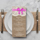 La collection rustique de mariage arc rose est un design étonnant avec un joli arrière - plan rustique effet burlap avec un ensemble romantique vintage effet dentelle blanche et un superbe arc rose. Ces menus peuvent être personnalisés pour vos occasions spéciales et rendraient le modèle parfait pour les menus mariages, les menus de douche nuptiale, les menus de fiançailles, les menus de fête d'anniversaire et bien plus encore. *Veuillez noter que Zazzle ne vend que des produits imprimés, de sorte que cet article n'a pas de véritables boucles, dentelles ou rubans/archets.