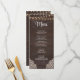Ajoutez une touche de charme rustique à votre réception de mariage avec notre Rustic Wooden String Light Menu Card. Ce menu magnifiquement conçu comprend un arrière - plan en bois rustique marron orné de délicats lampes à cordes et un motif en dentelle au sommet. La section menu personnalisable vous permet de la personnaliser avec votre sélection de plats et de boissons. Au verso de la carte, vous trouverez un motif en dentelle de mandala captivant, minutieusement confectionné sur l'arrière - plan en bois. Cela ajoute un élément supplémentaire d'élégance et d'unicité à votre affichage de menu. L'association du bois rustique, des lampes à cordes et de la dentelle crée un mélange harmonieux d'esthétique naturelle et délicate, parfait pour un mariage à thème rustique ou boho. Que ce soit pour un mariage romantique en plein air ou une fête intimiste en intérieur, notre Rustic Elegance Menu Card est un complément élégant à votre décor de réception. Il offre à vos clients un aperçu des plaisirs culinaires qui les attendent et renforce l'ambiance générale de votre lieu mariage. Customisez la carte de menu pour qu'elle corresponde à vos couleurs, polices et style mariages, ce qui en fait un souvenir personnalisé pour vos invités. C'est une façon merveilleuse de mettre en valeur votre attention aux détails et de créer une expérience culinaire mémorable. Profitez de l'élégance rustique de votre mariage avec notre carte de menu Rustic Elegance et laissez-la compléter votre décor et thème mariages.