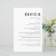 Ajoutez ces cartes de menu personnalisables au paysage de table de votre événement. Il comprend une simple typographie serif. Personnalisez ces cartes de menu modernes en ajoutant des noms, des dates et des choix de repas. Ces cartes de menu minimalistes sont parfaites pour les mariages, les baby showers, les douches nuptiales, les anniversaires, et bien plus encore.