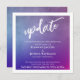 Cette conception présente une police de caractères moderne et manuscrite utilisée pour créer un graphique représentant le mot "update", grand et gras. Un subtil sur-ombrage à l'aquarelle a été placé en haut, ajoutant de la texture. Sous ce graphique, j'ai ajouté une autre image : un dégradé ombré avec des teintes riches de violet, bleu et rose gras. Vous pouvez faire pivoter cette image pour obtenir différents effets, si vous le souhaitez. Vous pouvez également choisir de supprimer la couche d'aquarelle texturée pour un traitement de surface plus lisse. Pour un effet gras supplémentaire, j'ai placé une bordure blanche épaisse autour des bords de la face avant de la carte. Utilisez les champs de modèle pour ajouter vos coordonnées et rendre cette conception moderne et unique vôtre. N'hésitez pas à nous contacter pour toute demande spéciale ou pour une aide à la personnalisation. // 100 //