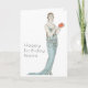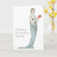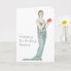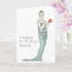 Carte de naissance avec femme rétro et éventail Ar