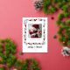 Un modèle moderne et doux de carte de naissance pour les fêtes de fin d'année avec un thème de feuillage hivernal, présentant un cadre botanique carré fantaisiste dessiné à la main avec des baies d'hiver et des coeurs rouges, sur le modèle de photo à l'avant et le titre "joyeux et bénis" en véritable feuille.