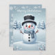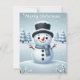C'est une jolie carte de bonhomme de neige de Noël. Il y a de la neige dans l'arrière - plan avec des arbres et une couleur bleu clair.