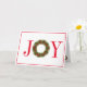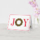 Cette carte de vœux de fêtes est présentée avec une impression festive de couronne de Noël écrite en Joie.