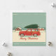 Envoyez une dose sincère de nostalgie des fêtes avec cette carte de Noël rétro. Le design capture la chaleur des souvenirs de vacances chéris, avec une break vintage rouge surmontée d'un sapin de Noël parfaitement attaché, se promenant dans un quartier enneigé de style moderne des années 50. Les tons atténués de rouge, de vert forêt, de crème et de bleu clair évoquent une atmosphère cosy et intemporelle, tandis que les bords usés et l'effet de papier texturé ajoutent un charme vintage. Recevoir cette carte, c'est comme entrer dans un film de Noël classique - une façon parfaite de partager la joie et les souvenirs à Noël.