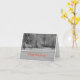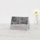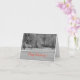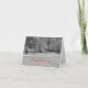 Carte de Noël avec un étang gelé et des arbres stériles. Photo en noir et blanc avec imprimé rouge.