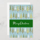 Carte unique avec arbres de Noël sur le devant. Les mots peuvent être changés à l'intérieur. Les couleurs sont le bleu, le blanc et le vert. Merci à Hungryjpeg pour certains des éléments du design.