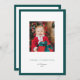 Voici une carte de Noël photo intemporelle et élégante qui incarne l'esprit de la saison : un design classique avec une bordure vert foncé gras qui encadre une seule photo, permettant à votre image chérie de briller dans toute sa splendeur. Le vœu simple mais chaleureux, "Joyeux Noël", transmet vos meilleurs vœux de vacances avec une grâce intemporelle.