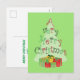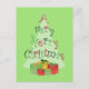 Texte de Joyeux Noël avec arbre de Noël et cadeaux. Personnalisez en changeant la couleur de fond et le message de Noël au dos.
