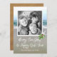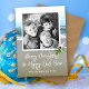 Cartes de Noël de la plage de l'océan. Customisez avec un salut et une signature. Ajoutez une photo de famille au modèle carré, avec un peu d'étoile de mer et un morceau de saint dans le coin. Reverse est une image de sable brun.