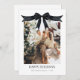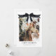 Souhaitez à votre famille et à vos amis Joyeux Noël avec une carte de Noël coquette noire personnalisée avec une photo d'arc de Noël présentant votre famille sur le devant enveloppé comme un cadeau de Noël dans un arc noir et des rubans, plus un côté arrière avec des photos supplémentaires et une note de vacances texte modifiable. Ces cartes de fin de année de photos de Noël noirs modifiables sont une façon parfaite de partager la joie et les souhaits de vacances heureux. La collection CORBIN présente une photo de votre famille avec un message Joyeux Noël modifiable sur le devant et l'année dans une paire de polices serif en noir. Des rubans moody et un arc coquette noir ornent une carte de vacances photo qui met en valeur votre photo de famille. Un côté arrière optionnel est inclus avec trois photos de famille et une note, avec un arc noir et un ruban.