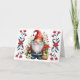 Carte de Noël blanche Gnome & Florals de Père Noël