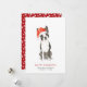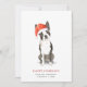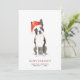 La carte de Noël Cute Boston Terrier souhaite des Joyeuses Fêtes personnalisées avec vos noms, le nom du chien et l'année. Festive rouge et blanc empreinte de patte et arrière - plan d'os.
