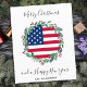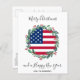 Envoyez vos vœux de Joyeux Noël à vos amis et à votre famille avec cette carte de Noël unique au drapeau américain USA - Couronne de Noël dans un design de drapeau américain moderne rouge, blanc et bleu avec du houx et des baies. Personnalisez avec le nom de votre famille. Cette carte de Noël patriotique est parfaite pour les familles de militaires, les vétérans, les familles patriotiques et les cartes de Noël du département des services aux vétérans. COPYRIGHT © 2020 Judy Burrows, Black Dog Art - Tous droits réservés. Carte de Noël pas chère au drapeau américain USA patriotique.