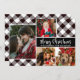 Élégant, moderne Buffalo noir et blanc Plaid 4 Photo Collage Joyeux Noël Carte de vacances. Ce modèle festif de quatre (4) photo de carte de vacances présente un joli collage photo, noir et blanc de buffle plaid / chèque motif et dit Joyeux Noël! Le texte de salutation "Joyeux Noël" est écrit dans un beau type de police de typographie lettrée à la main. À l'inverse, on trouve également un motif de buffle.