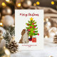 Carte de Noël mignonne Cavalier King Charles Spaniel avec arbre de Noël et cadeau. Personnalisez avec votre texte.