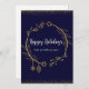 Envoyez cette belle carte de vœux chic pendant la période des fêtes à vos proches. La carte plate de 5 x 7 pouces présente un fond bleu foncé orné d'une boucle dorée et d'une bordure scintillante.