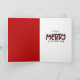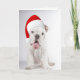 Sur le devant de cette carte de Noël, un adorable chiot de Bulldog blanc avec sa langue pendante, porte un chapeau de Père Noël rouge vif. L'intérieur a du texte personnalisé qui dit "Ho Ho Ho" et du texte stylisé qui dit MERRY CHRISTMAS. Mignonne !