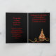 Carte de Noël chrétienne avec un beau sapin de Noël ruban rouge et or sur un fond noir élégant. Cette belle carte de Noël chrétienne noire rouge et or est facilement personnalisable avec votre nom ou le nom de votre famille, ou vous pouvez la laisser telle quelle et ajouter votre message manuscrit à l'arrivée.