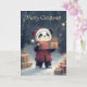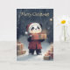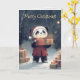 Carte de Noël avec un panda mignon tenant des cadeaux de Noël. Vous pouvez customiser à la fois l'accueil sur le devant et le message à l'intérieur de la carte à votre goût.