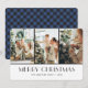 Photo Plaid de buffle bleu personnalisé Joyeuses cartes de Noël avec trois photos. Personnalisez facilement ces cartes photo de Noël avec vos images et texte préférés.