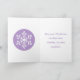 Le devant est recouvert d'un flocon blanc sur un arrière - plan violet clair avec "Joyeux Noël" de la famille autour. L'intérieur a une répétition du flocon de neige et un message en violet assorti.