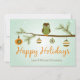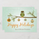 Cette carte de vacances moderne présente un graphique avec des ornements rétro et une chouette perchée sur une branche avec le message Happy Holidays. Personnalisez avec vos noms.