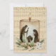Souhaitez à vos proches un Joyeux Noël avec cette carte de Noël merveilleusement simple avec la scène de la nativité dépeinte en silhouette sur une bougie, et une branche d'olivier et des fleurs sur un scannage de la feuille de musique "Silent Night" tirée d'un livre d'hymne antique.