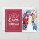 Carte de Noël de typographie élégante blanche et rouge Amour et Joie pour les fêtes.