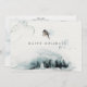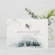 Cartes de Noël hiver gelé bois. Happy Holidays texte entièrement personnalisable. Forêt boisée moelleuse avec un arrière - plan de lavage à l'aquarelle. Couronne florale sur le dos de la carte. Avec un petit oiseau d'hiver, la souris Tufted Titmouse sur le devant des cartes.