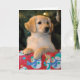 Carte de Noël d'or de présent de chiot
