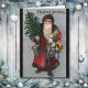 Une image de l'époque victorienne classe et sophistiquée du Père Noël portant un arbre et des jouets est sur le devant de cette carte de voeux de Noël. Célébrez Noël de la manière démodée ! Le message intérieur est facilement customisé si vous souhaitez le modifier.