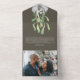 Fleurs d'hiver et Mistletoe Élégant Noël tout en une carte, enveloppe et photo-keepsaké Carte - Carte photo de vacances de Ricaso - conçu avec des détails floraux verts et blancs - il est sûr d'être un succès avec famille et amis .. facile d'ajouter votre propre texte et photo - Envoyer vos salutations dans le style de ce jour avec une carte personnalisée avec de belles fleurs botaniques d'hiver