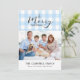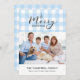 En vichy classique bleu clair avec joyeux voeux de Noël. Espace pour 1 photo horizontale et message personnel sur le devant, et l'année sur le côté arrière correspondant.