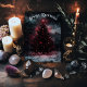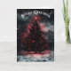 Carte de Noël Épouvantable. © Dark Heart Desires. Cette carte comporte un sapin de Noël solitaire avec des décorations et des lumières rouges allumées. Elle est vierge à l'intérieur pour vous permettre d'ajouter vos propres messages de Noël.