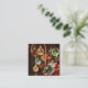 Une carte de Noël au format carré de billes de verre festives décoratives, parfaite pour les amateurs d'ornements traditionnels aux couleurs de Noël. C'est une carte de Noël classique.