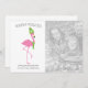 Une carte de Noël avec l'illustration d'un flamant rose portant une écharpe verte avec un casquette de flocon de neige assorti. Personnalisez le texte et la photo.