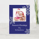 Des flocons de neige cristallins illustrés par une photo mettent en valeur la photo de votre famille sur cette carte de Noël personnalisée.