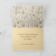 Un merveilleux pays d'hiver d'arbres de Noël dorés et argentés parade sur un arrière - plan blanc cassé dans cette aquarelle vintage. Des flocons d'or brillant tombent au-dessus de l'adorable groupement de pins de vacances. Le texte modifiable inclut "Joyeux Noël" sur le devant et des salutations supplémentaires à l'intérieur de la carte pliée. Assurez-vous de modifier l'exemple "à partir de" noms et année. A l'intérieur de cette carte de vacances se trouve un motif assorti de pins.