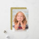 Votre propre photographie est au centre de la scène sur cette carte unique et élégante Holiday. En bas se trouve la typographie blanche qui dit "Joyeux Noël et Bonne Année". En dessous, c'est un champ de texte en or foncé pour vous de customiser. Le dos de la carte est orné d'un joli motif d'or représentant des photos de bonhomme de neige, d'étoile et d'arbre de Noël dessinées à la main.