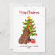 Carte de Noël Goldendoodle mignonne avec arbre de Noël et cadeau. Personnalisez avec votre texte.