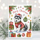 Jolie aquarelle Siberian Husky Joyeuse carte de Noël avec un charmant Husky Sibérien décoré avec décoration de Noël, des cadeaux, et un arbre de Noël. Personnalisez avec votre texte de salutation.