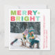 Envoyez votre amour dans un style de vacances dynamique avec cette carte de Noël audacieuse et joyeuse avec un grand message "Merry + Bright" en rouge, vert et turquoise au-dessus de votre photo préférée. Un motif ludique à cordes décore le dos pour une pop supplémentaire de charme festif. Customisez l'accueil et la signature pour en faire le vôtre unique, parfait pour les familles qui aiment les conceptions modernes, colorées et joyeuses de vacances.