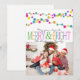 Cette carte photo moderne de Noël est dotée de lumières à cordes multicolores et de l'expression populaire "Joyeux et lumineux". Incluez votre photo de famille pour customiser la carte. La carte de vacances moderne et fantaisiste parfaite à envoyer à votre famille et à vos amis.
